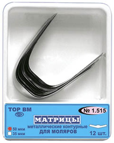 1.514 Матрицы металлические контурные, центр. выступ, для моляров (12шт), ТОР ВМ / Россия