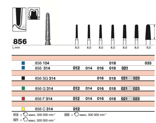 Алмазный бор D+Z /856 314.014 используется для препарирования зубов. Обычно он применяется при формировании полостей и подготовке под коронки. Конусовидная форма с закругленным концом удобна и безопасна в работе.