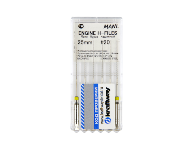 Н-Файлы Энжин №20 от японского бренда Mani – это машинные буравы премиум-класса длиной 25 мм. Обладают исключительной прочностью и режущей способностью благодаря использованию высококачественной медицинской стали и инновационной алмазной заточке. Инструменты устойчивы к коррозии и излому, что обеспечивает максимальную надежность и предсказуемость при работе.